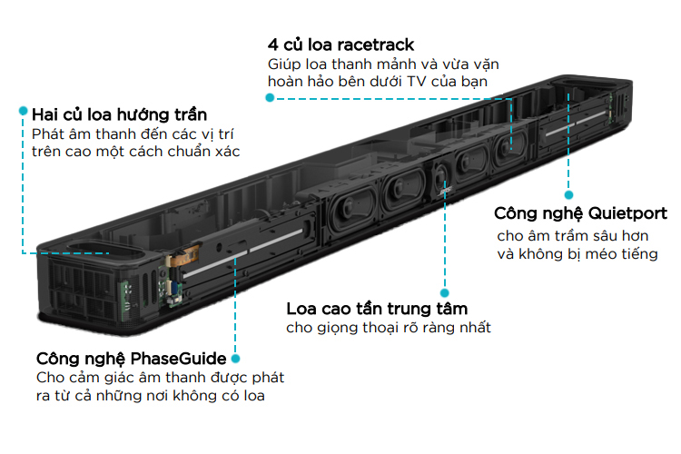 • Kết nối duy nhất với TV qua cáp âm thanh quang hoặc cáp HDMI eARC.