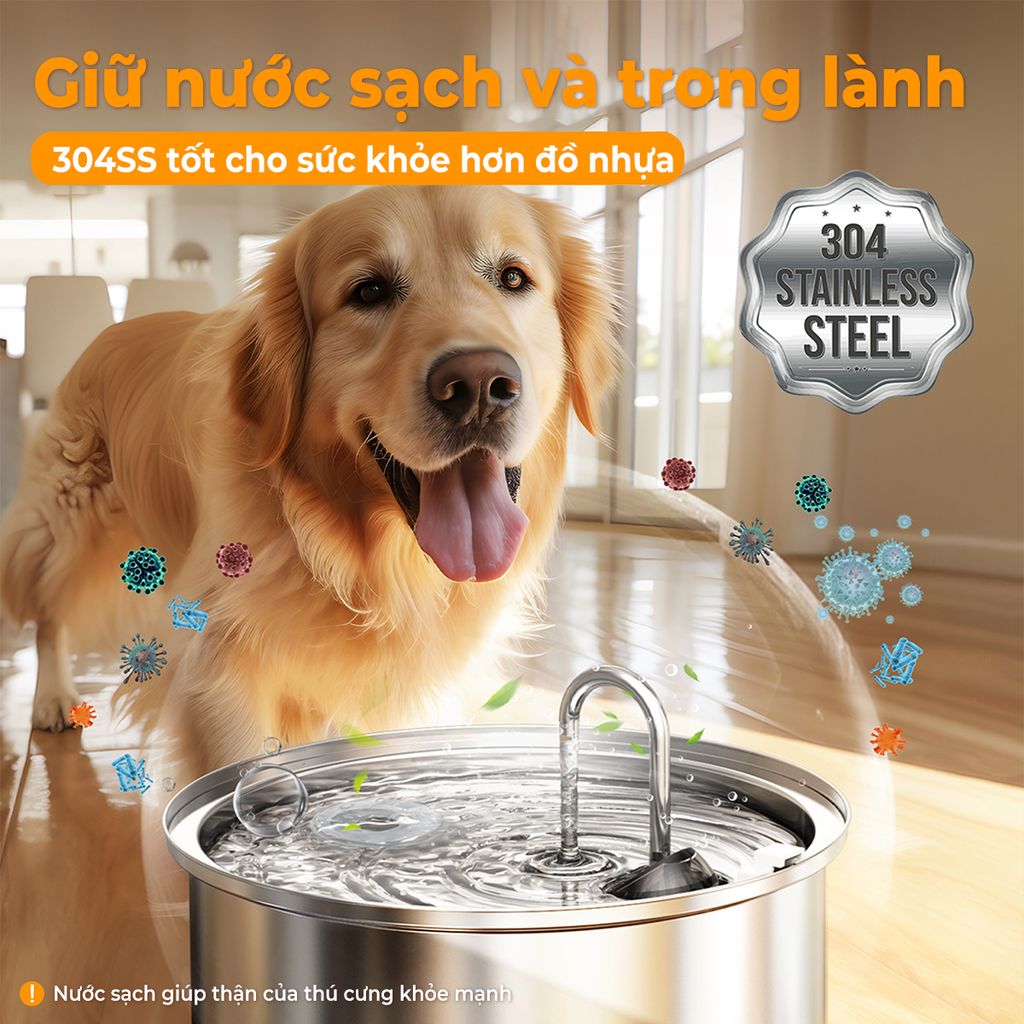 • Chất liệu inox 304 giữ nước sạch và hạn chế vi khuẩn hơn đồ nhựa.