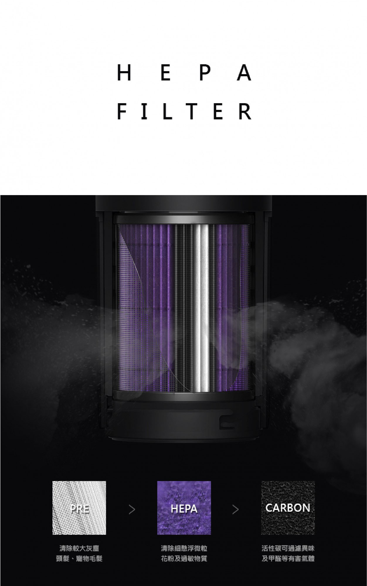 • 5 giai đoạn lọc không khí, loại bỏ hiệu quả bụi mịn, chất gây dị ứng và vi khuẩn